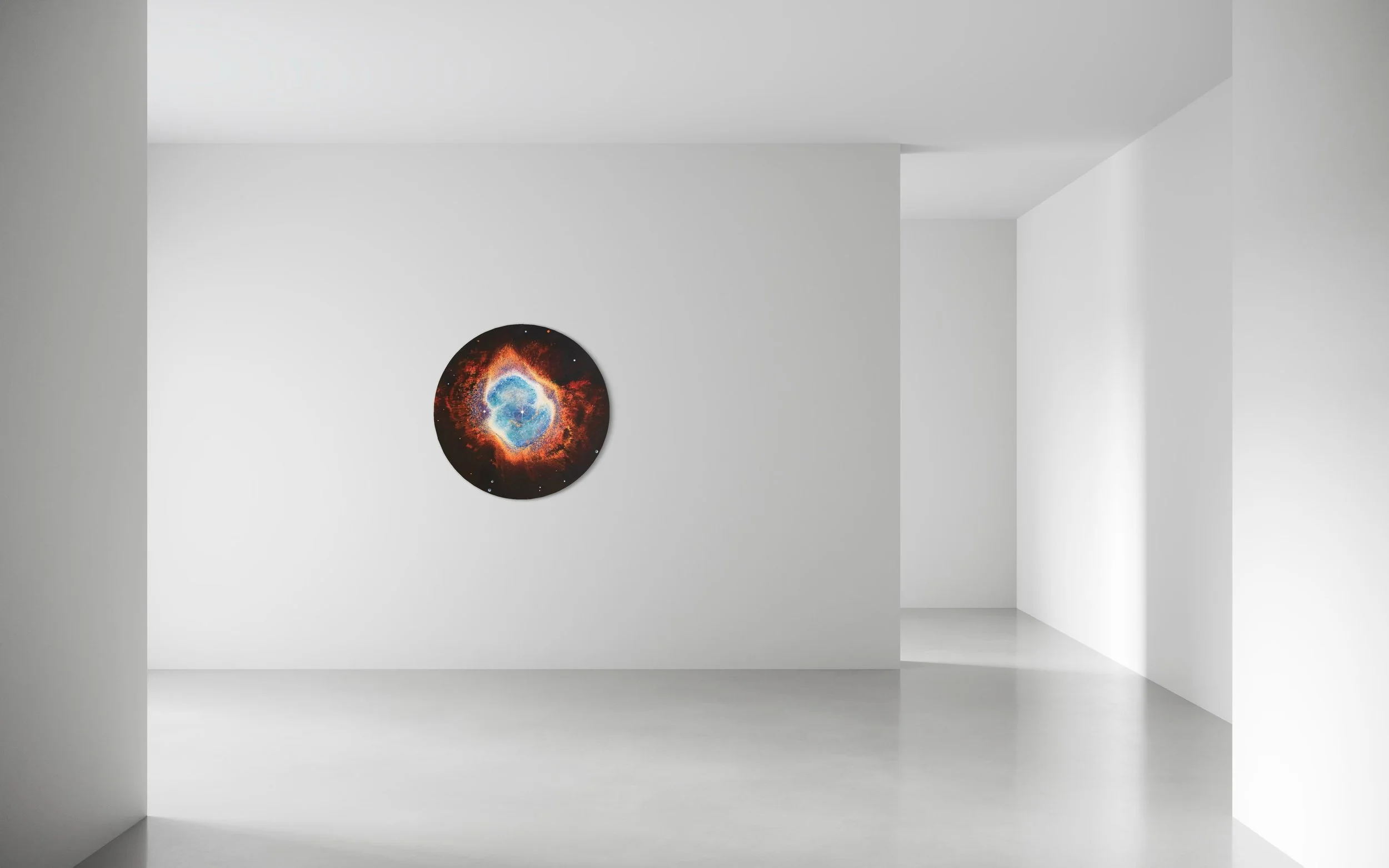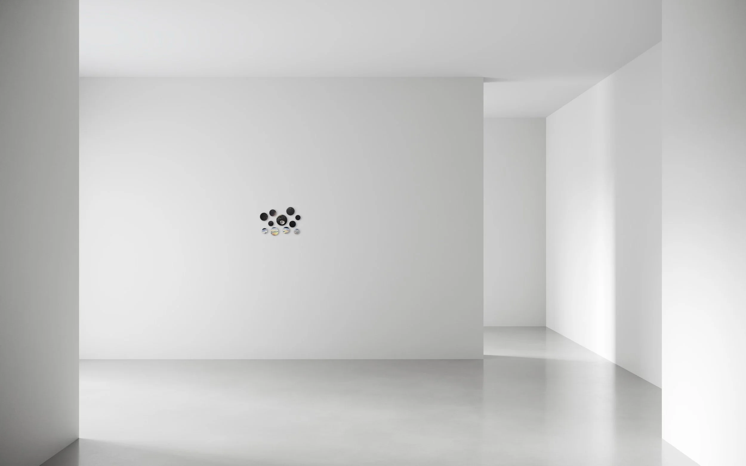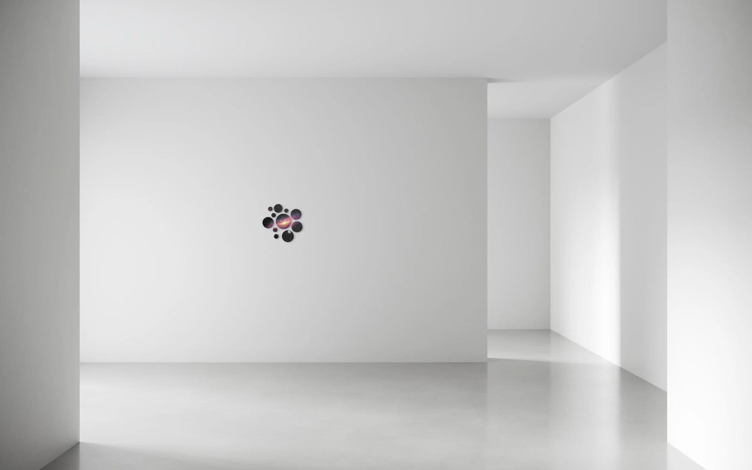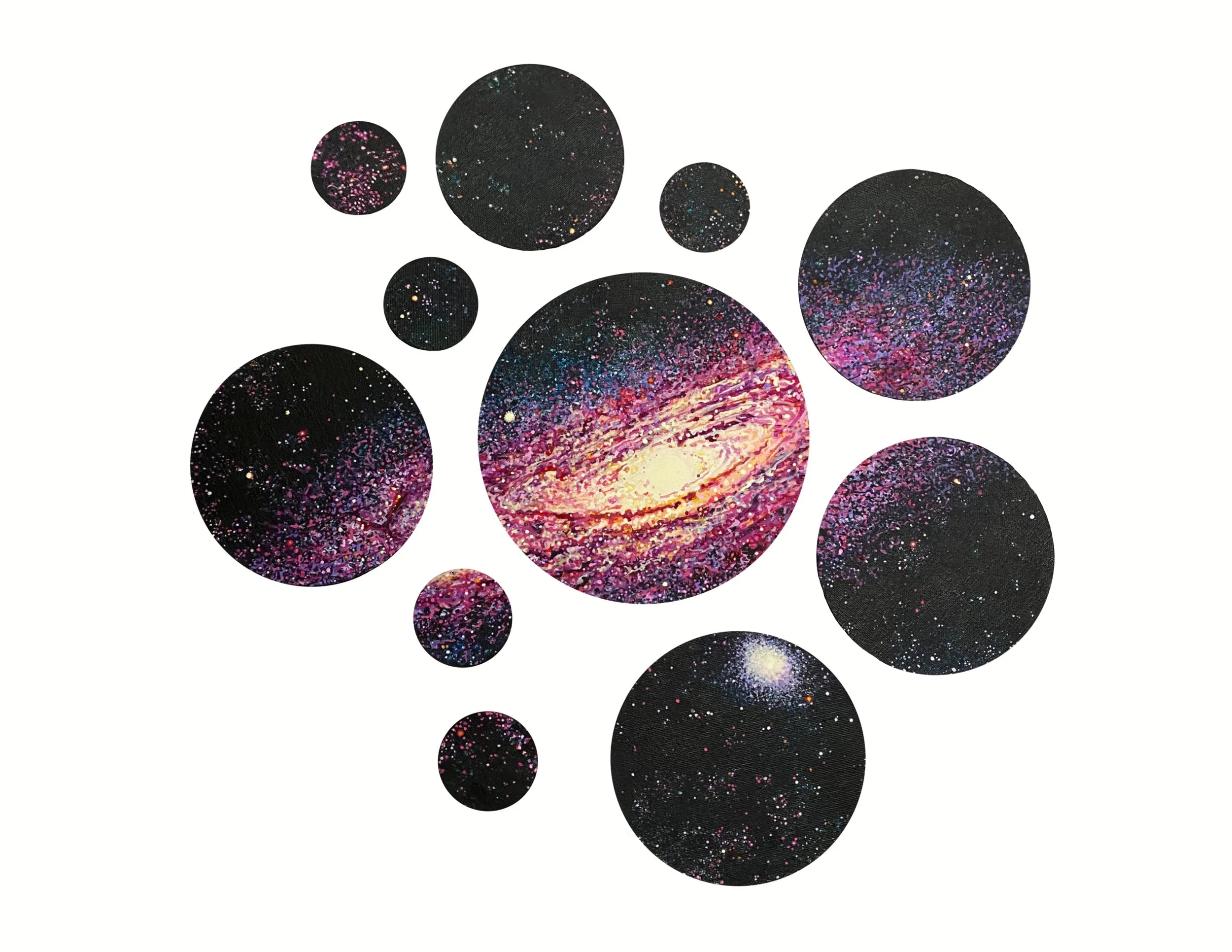 We all come from the stars Andromeda, 2025 Acrylic on canvas Polyptych (11 circle pieces)