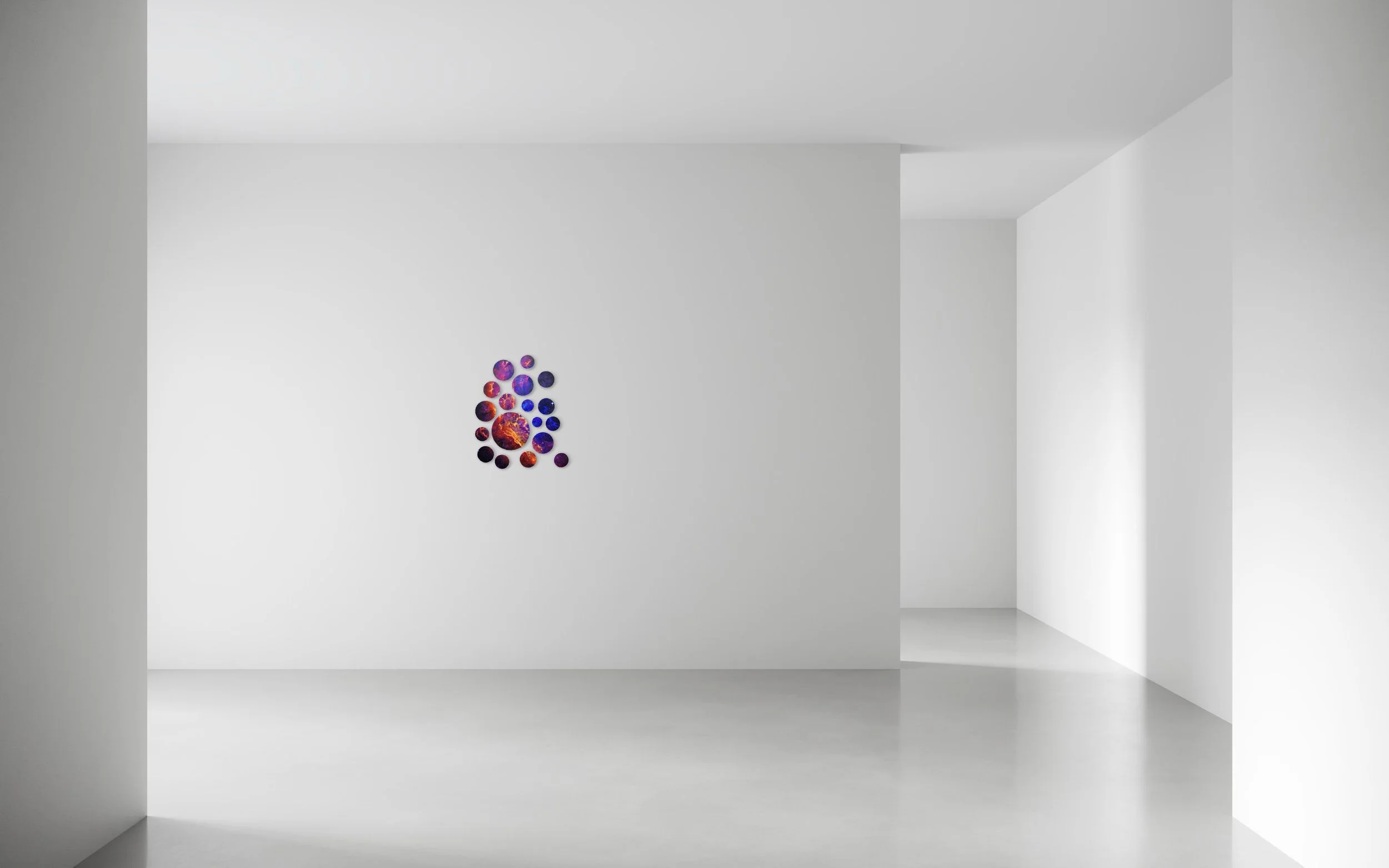 We all come from the stars Cali Nebula, 2017 Acrylic on canvas Polyptych (18 circle pieces)