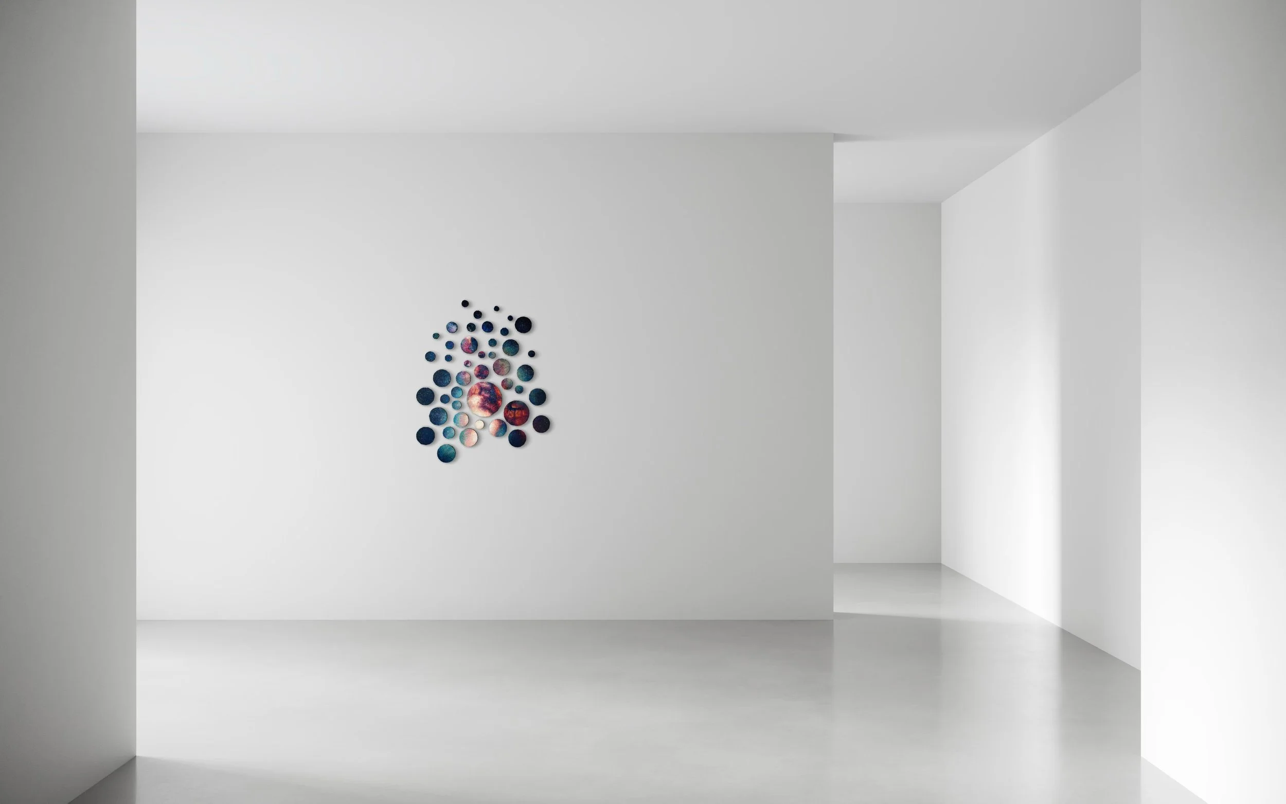 We all come from the stars Depth of light, 2017 Acrylic on canvas Polyptych (47 circle pieces)