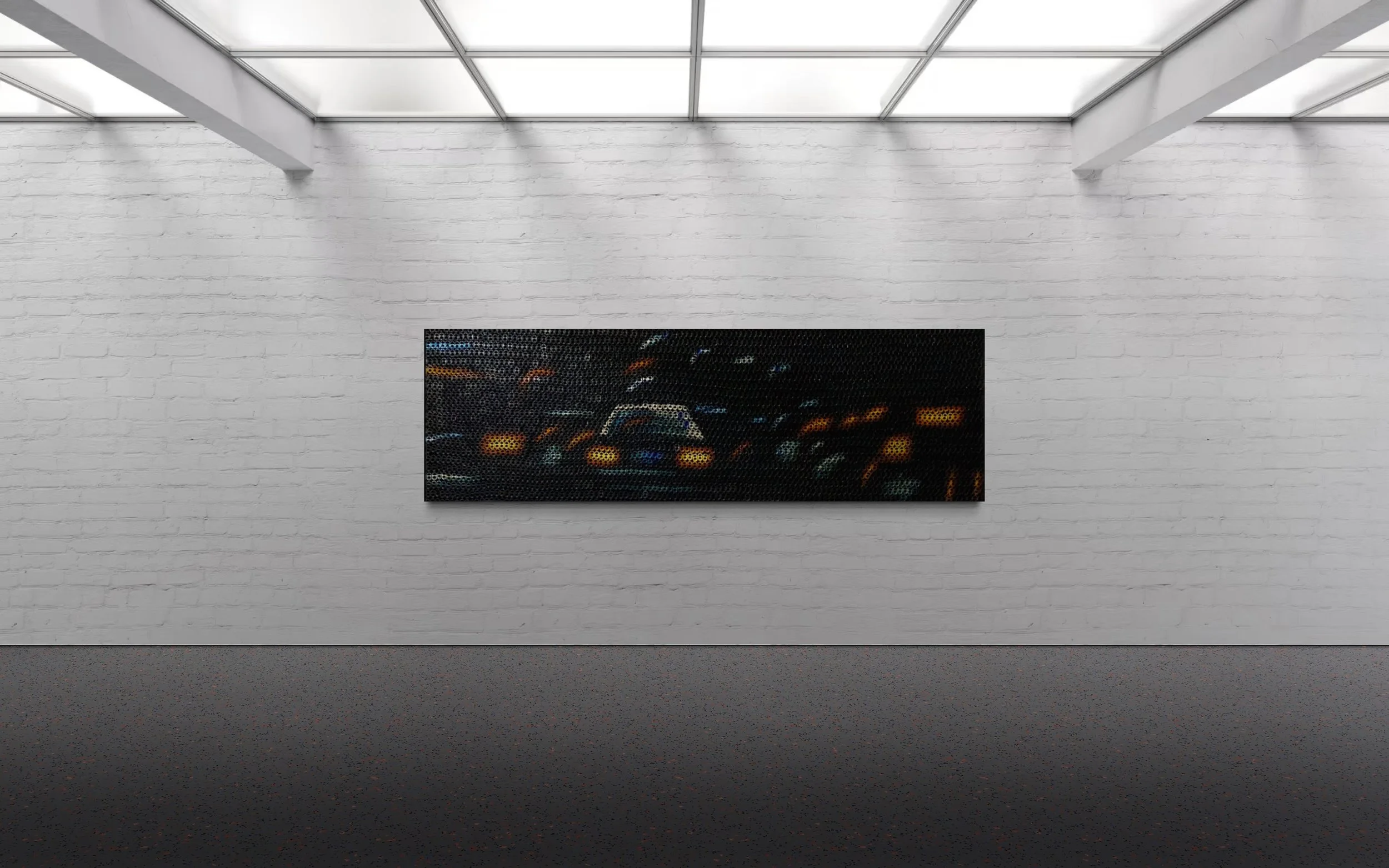 Punto de Fusion, Noche, 2010. Mixed Media, (oil on aluminium ) 60 cm x 180 cm