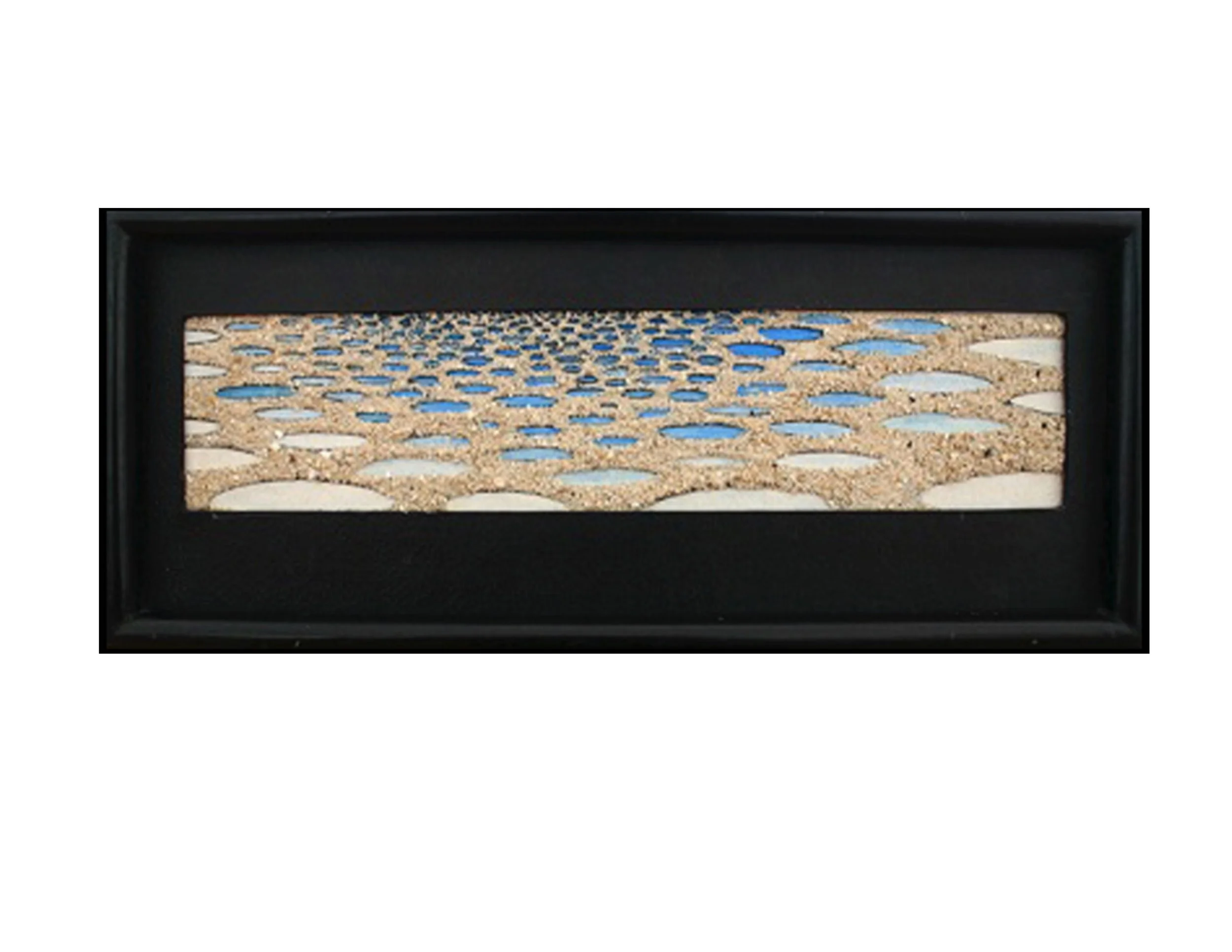 Punto de Fusion Polvo ligero, 2010. Mixed Media, (oil, sand & plastic caps on canvas) 20 cm x 25 cm