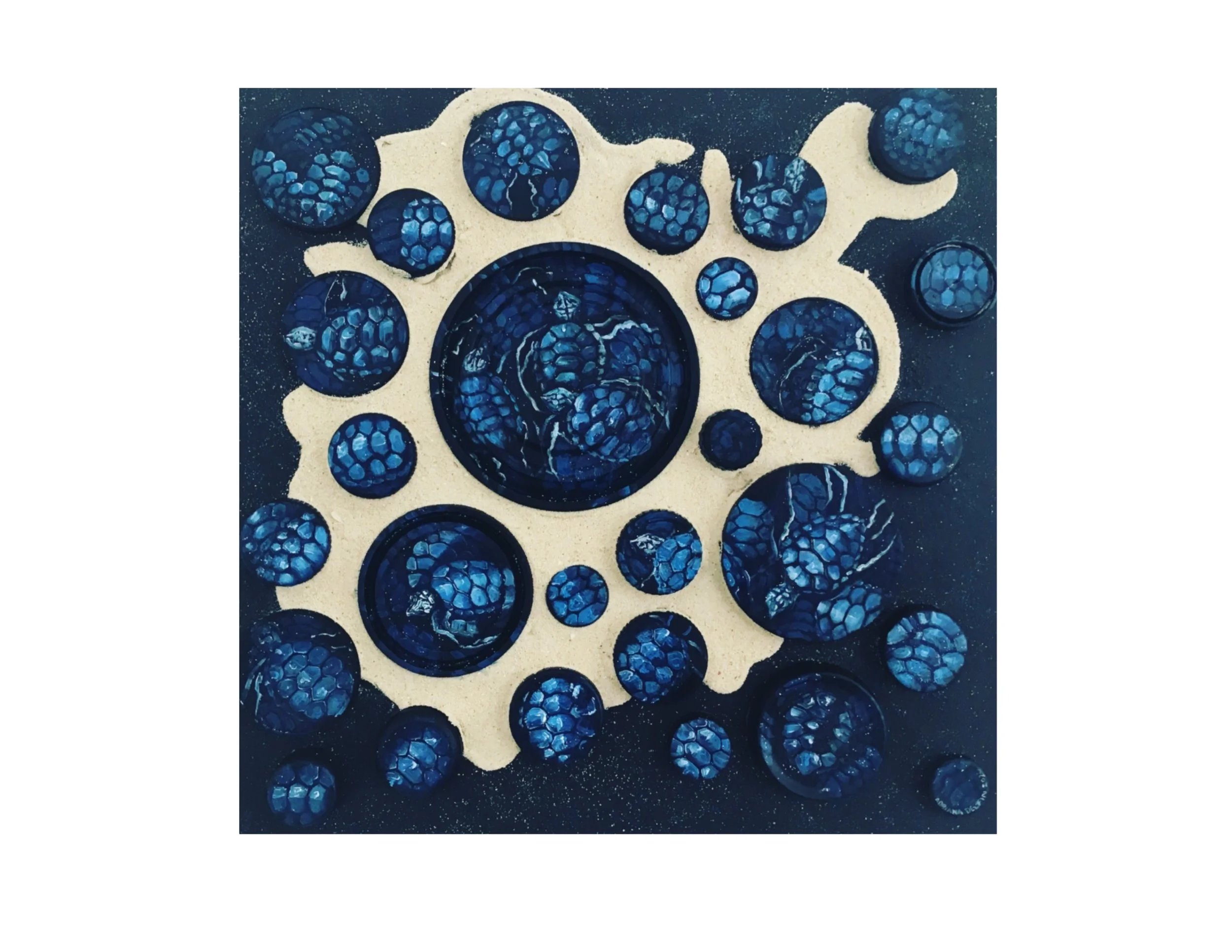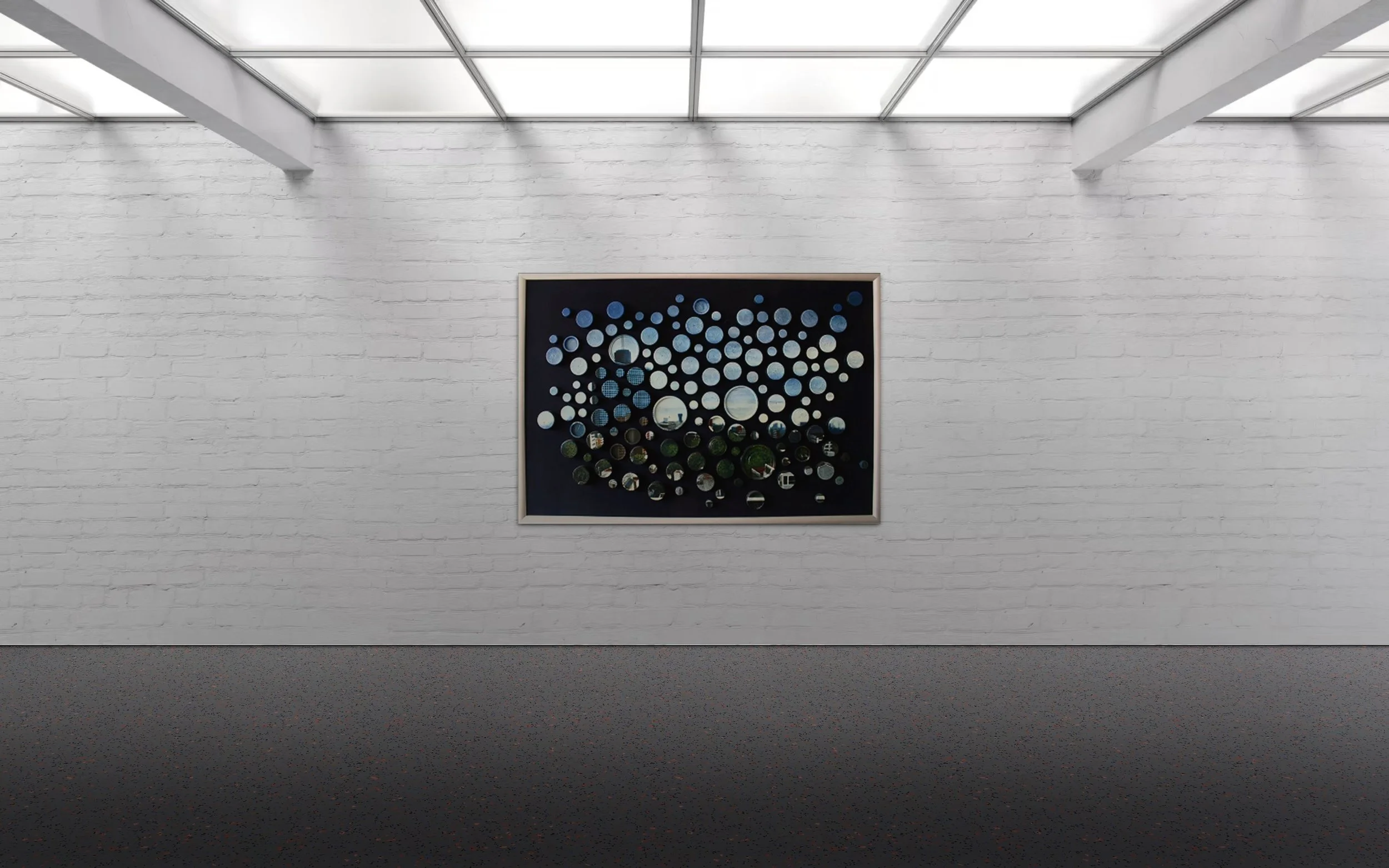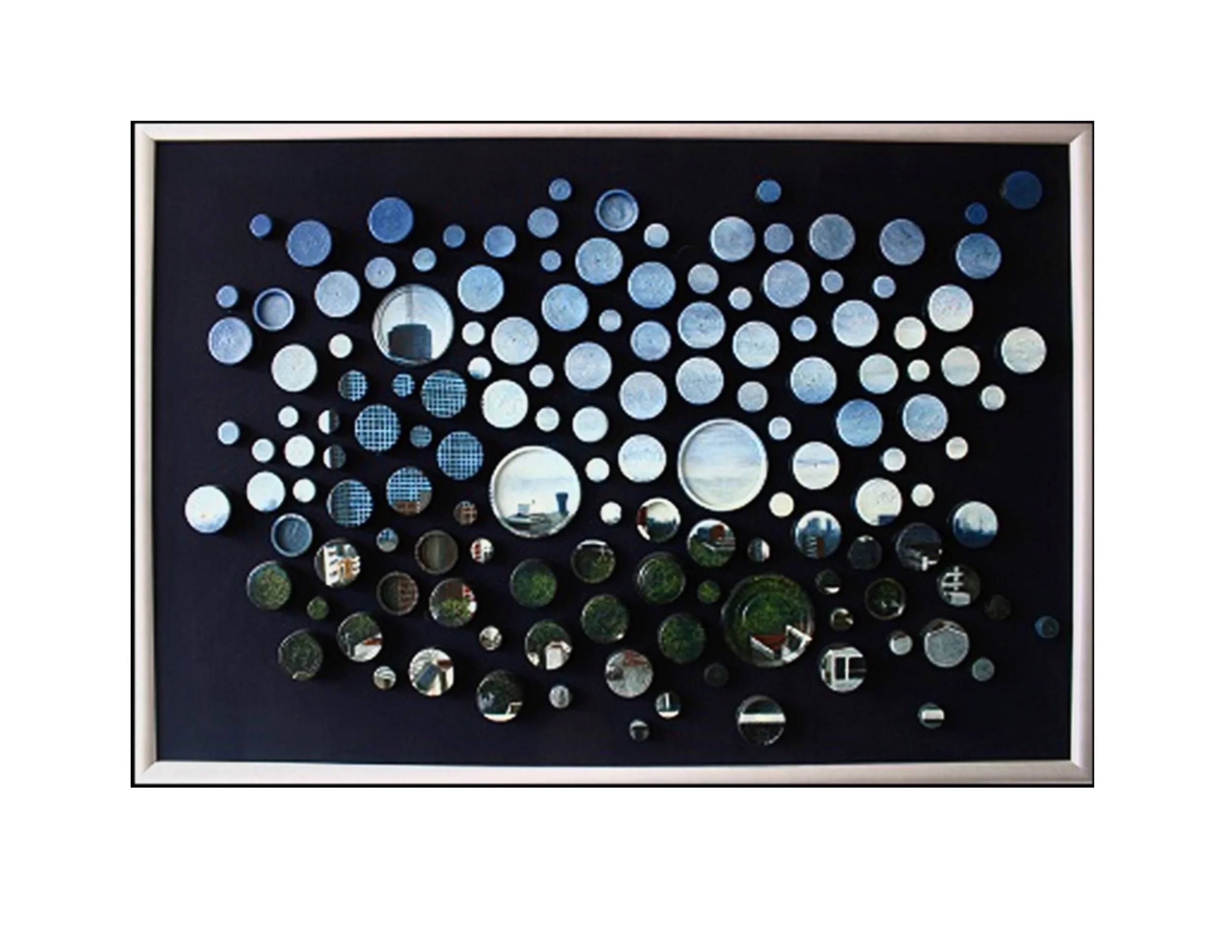 Punto de Fusion, WTCDF2011, 2011. Mixed Media, (oil & plastic caps on canvas) 70 cm x 120 cm